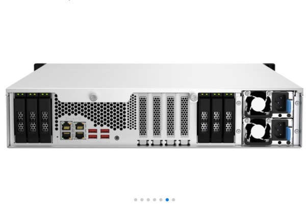 Сетевой RAID-накопитель QuTS hero, 12 отсеков 3,5"/2,5", 6 отсеков 2,5", 2 порта 2,5 GbE BASE-T, 2 порта 10 GbE BASE-T, стоечное исполнение, 2 блока питания. Intel Xeon E-2336 2,9 ГГц (4,8 ГГц), 32 ГБ DDR4. Направляющие в комплект поставки не входят.