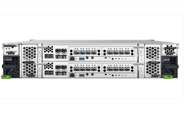 Двухконтроллерная система хранения данных SAN QSAN, iSCSI, 2U, Intel 4-Core, 32ГБ DDR4(максимум 512 ГБ), 12 слотов 3,5", 8 портов 10GbE SFP + iSCSI, 4 оптических трансивера в комплекте, 4 слота для дополнительных карт расширения, 2 БП, направляющие.